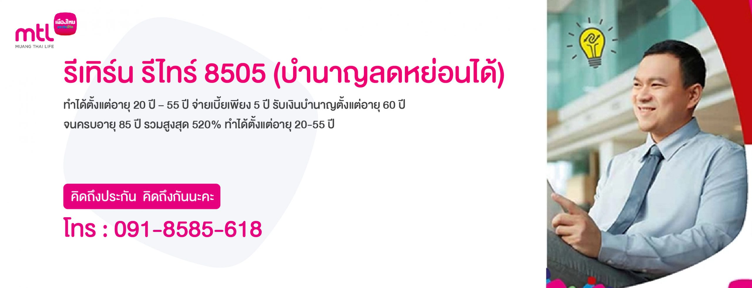 แบบฟอร์มติดต่อ ทำประกันชีวิตรีเทิร์น รีไทร์ 8505 (บำนาญลดหย่อนได้)